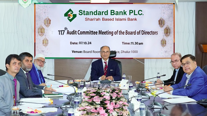 নিজস্ব প্রতিবেদকঃ শরি‘আহ্ ভিত্তিক স্ট্যান্ডার্ড ব্যাংক পিএলসি. এর অডিট কমিটির ১১৭তম সভা ০৭ অক্টোবর ২০২৪ তারিখে ঢাকায় ব্যাংকের প্রধান কার্যালয়ের বোর্ডরুমে কমিটির সম্মানিত চেয়ারম্যান গোলাম হাফিজ আহমেদ-এর সভাপতিত্বে অনুষ্ঠিত হয়।