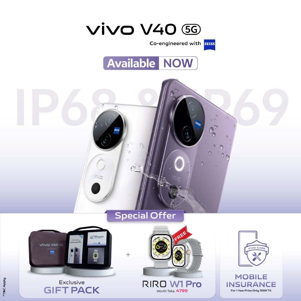 ৬ অক্টোবর থেকে ভিভো যেকোনো শো-রুম বা ইস্টোর থেকে সংগ্রহ করা যাবে নতুন স্মার্টফোন ভিভো ভি৪০ ফাইভজি। স্মার্টফোনটিতে রয়েছে জাইসের ৫০ মেগাপিক্সেল ট্রিপল ক্যামেরা লেন্স, জাইস সিনেম্যাটিক পোর্ট্রেট ভিডিও, জাইস স্টাইল বোকেহ, জাইস মাল্টিফোকাল পোর্ট্রেট, ১২০ হার্জ রিফ্রেশ রেটের থ্রিডি কার্ভড ডিসপ্লে, ৫৫০০ মিলিঅ্যাম্পিয়ারের ব্লুভোল্ট ব্যাটারি, ৮০ ওয়াটের ফ্লাশ চার্জার এবং আইপি৬৮ এবং আইপি৬৯ ওয়াটার ও ডাস্ট রেজিস্টেন্স প্রযুক্তি।