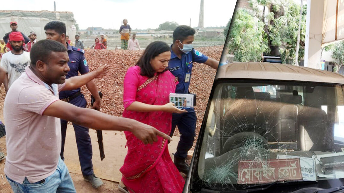 জাকির কাগজপত্র দেখাতে সময় চাইলে ভেকু দিয়ে ইটভাটা ভাঙা শুরু হয়। এতে জাকির বাধা দিলে তাকে ম্যাজিস্ট্রেটরা ধমক দেন। এ সময় ইটখোলার শ্রমিকরা ক্ষিপ্ত হয়ে ম্যাজিস্ট্রেটসহ পুলিশের ওপর ইট-পাটকেল নিক্ষেপ করেন। এতে ভ্রাম্যমাণ আদালতের কর্মকর্তাদের একটি গাড়ির কাচ ইটের আঘাতে ভেঙে যায়। পরে তারা দ্রুত ঘটনাস্থল ত্যাগ করেন। জেলা প্রশাসনের নির্বাহী ম্যাজিস্ট্রেট মোছাম্মত জেসমিন নাহার বলেন, ‘একটি গাড়ি ভাঙচুর হয়েছে।
