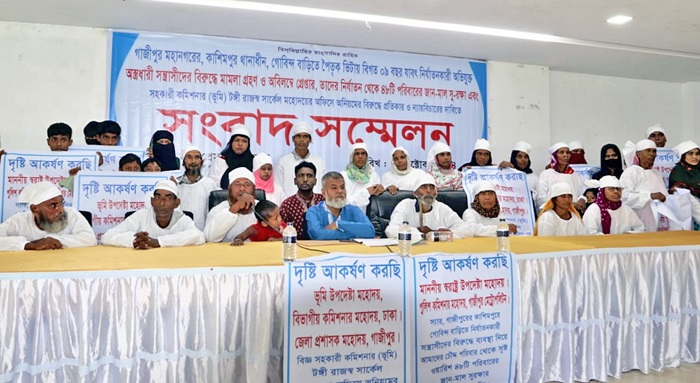 ভুক্তভোগী পরিবার একাধিকবার অভিযোগ নিয়ে এবং নিরাপত্তার জন্য পুলিশের কাছে গেলেও কোন অদৃশ্য কারণে তারা সহযোগিতা করেনি। তাছাড়াও বিগত ০৯ বছর যাবৎ সশস্ত্র হামলা, গুম খুনের ভয় ও প্রাণনাশের হুমকি দিয়ে ৪৮টি পরিবারকে গাজীপুরের পৈতৃক ভিটায় আসা থেকে বিরত রেখেছে এবং ৪৮টি পরিবারের অজান্তে সন্ত্রাসীরা নিজেরাই বাদী-বিবাদী হয়ে এবং ভূয়া ওয়ারিশ পরিচয়ে অপকৌশলে জমির কাগজপত্র জাল-জালিয়াতি করে ৪৮টি পরিবারের ৫ টা খতিয়ানের ২৩০ শতাংশ বৈধ পৈত্রিক সম্পত্তি অবৈধ ভাবে আত্মসাত করে বিক্রি করেছে। বর্তমানে অবশিষ্ট ১৫০ শতাংশ পৈত্রিক জমিও আত্মসাৎ করার পায়তারা করছে। আমরা ভেবেছিলাম ৫ই আগস্ট ছাত্র-জনতার গণঅভ্যূত্থানের পর আমরা আমাদের জায়গা বুঝে পাবো। কিন্তু এখনও তারা এক শ্রেণীর ভূমিদস্যু ও দখলবাজদের সাথে আতাত করে এলাকায় অবস্থান করছেন এবং আমাদেরকে আমাদের জন্মভিটায় প্রবেশ করতে বাধাগ্রস্থ করছে। আজ আমরা কাফনের কাপড় পড়ে এসেছি। বর্তমান সরকারের প্রধান উপদেষ্টার দৃষ্টি আকর্ষণ করে তারা বলেন, আমাদেরকে মেরে ফেলুন তা না হলে এই সন্ত্রাসীদের কবল থেকে আমাদেরকে উদ্ধার করুন। সংবাদ সম্মেলন শেষে জাতীয় প্রেসক্লাবের সামনে ৪৮টি ভিকটিম পরিবারের সদস্যরা প্রতিকী অনশন করেন।