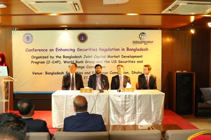 দেশের পুঁজিবাজারের উন্নয়নে বাংলাদেশ সিকিউরিটিজ অ্যান্ড এক্সচেঞ্জ কমিশনের (বিএসইসি) সঙ্গে কাজ করবে বিশ্বব্যাংক ও যুক্তরাষ্ট্রের সিকিউরিটিজ অ্যান্ড এক্সচেঞ্জ কমিশন (এসইসি)। এলক্ষ্যে রোববার (২৭ অক্টোবর) ‘সিকিউরিটিজ রেগুলেশন বাড়ানোর উপর সম্মেলন’ শীর্ষক এক কর্মশালার উদ্বোধন করা হয়।