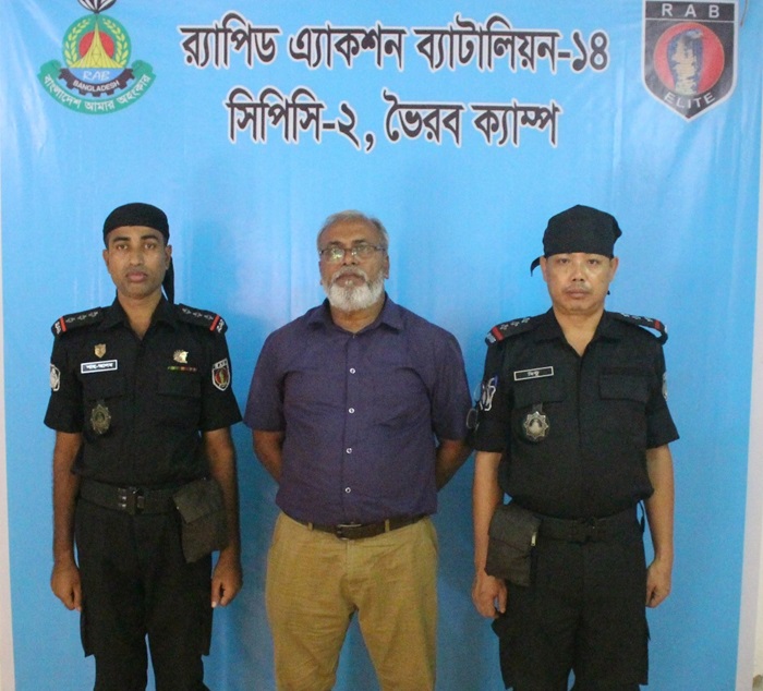 আজ সোমবার( ২৮অক্টোবর) দুপুর সাড়ে ১২টায় র্যাব-১৪ ক্যাম্পের একটি আভিযানিক দল শহরের হাজী আসমত সরকারি কলেজের সামনে থেকে তাকে গ্রেফতার করেন।