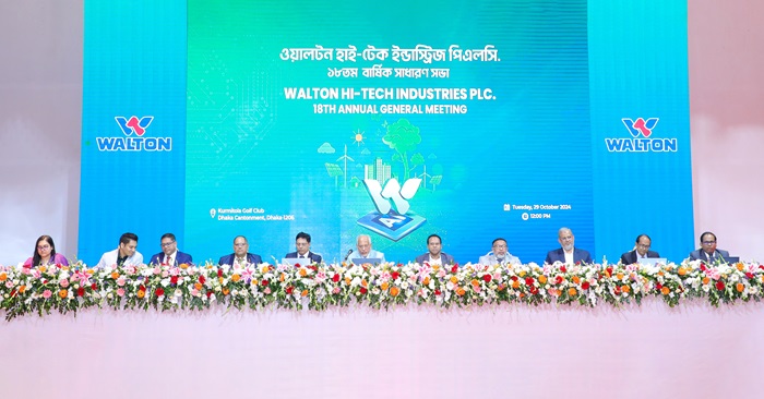 সভা পরিচালনা করেন কোম্পানী সচিব মো. রফিকুল ইসলাম, এফসিএস। সভায় স্বাগত বক্তব্যে ওয়ালটন হাই-টেকের চেয়ারম্যান এস এম শামছুল আলম বলেন, বৈশ্বিক প্রতিক‚ল অর্থনৈতিক পরিস্থিতির মধ্যেও ২০২৩-২৪ হিসাব বছরে ব্যবসা পরিচালনায় অসাধারণ সাফল্য অর্জন করেছে ওয়ালটন। উক্ত হিসাব বছরে উল্লেখযোগ্য পরিমাণ মুনাফা অর্জনের প্রেক্ষিতে প্রাতিষ্ঠানিক ও সাধারণ শেয়ারহোল্ডারদের জন্য আকর্ষণীয় লভ্যাংশ