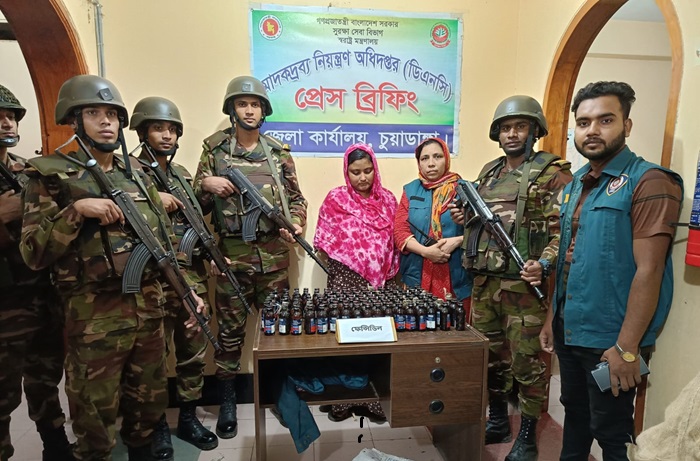 অভিযানকালে চিহ্নিত মাদক ব্যবসায়ী আনোয়ারা বেগম (৩০) এবং মোঃ এনামুল হক (৩৪) কে তাদের নিজস্ব বাসস্থান, দর্শনার আকন্দবাড়ীয়া গাংপাড়া এলাকা থেকে ১২০ বোতল ফেনসিডিলসহ গ্রেপ্তার করা হয়। গ্রেপ্তারকৃতদের মধ্যে আনোয়ারা বেগমের স্বামী মোঃ এনামুল হক এবং এনামুল হকের পিতা মৃত আলী আহমেদ।