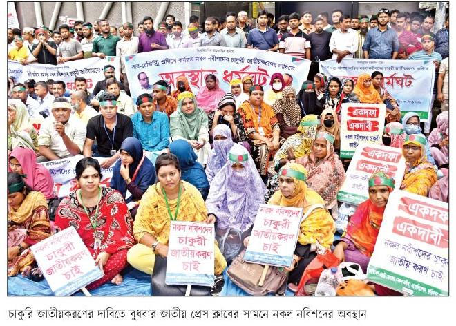 উল্লেখ্য, সাব—রেজিস্ট্রি অফিসে কর্মরত ১৬ হাজার ২৪৬ জন এক্সট্রা—মোহরার/নকল নবীশদের জাতীয়করণের দাবিতে ১৯৮২ সাল হতে আন্দোলন চলছে। তারই ধারাবাহিকতায় এই দফায় নকল নবীশদের লাগাতার অবস্থান কর্মসূচির অংশ হিসেবে গত ২০ অক্টোবর থেকে অবস্থান কর্মসূচি চলছে।