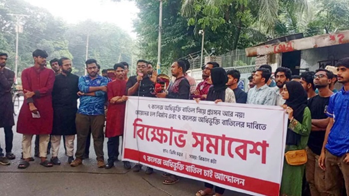 আন্দোলনকারী শিক্ষার্থীরা বলেন, ২০১৯ সালে আমরা প্রথম সাত কলেজ অধিভুক্তি বাতিলের জন্য আন্দোলন করেছিলাম। কিন্তু শেখ হাসিনা সরকার ও তৎকালীন ভিসি অধ্যাপক আখতারুজ্জামান আমাদের এ দাবি মেনে নেননি। এখন ৭ কলেজের শিক্ষার্থীরাও আলাদা হতে চায়। তাহলে আবার কেন তাদের অধিভুক্ত রাখা হচ্ছে। আমাদের মেয়েদের জন্য হলে সিট নেই। মেয়েদের হল নির্মাণ না করে তারা কীভাবে বিশ্ববিদ্যালয়ের ভেতর ৭ কলেজের জন্য আলাদা ভবন করার কথা বলে।