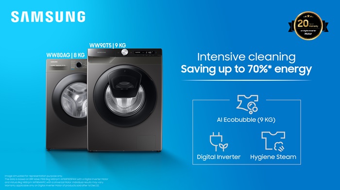 স্যামসাংয়ের বহুল প্রশংসিত ডিজিটাল ইনভার্টার প্রযুক্তি শক্তিশালী ম্যাগনেট ব্যবহার করে তুলনামূলক কম শব্দে শক্তিশালী পারফরমেন্স নিশ্চিত করবে, যা ইউনিভার্সাল মোটরের চেয়ে কম বিদ্যুৎ ব্যবহার করে। এ ডিজিটাল ইনভার্টার উভয় মডেলে সর্বোচ্চ পরিমাণ বিদ্যুৎ সাশ্রয় করবে এবং সাথে রয়েছে ২০ বছরের মোটর ওয়্যারেন্টি; ফলে, থাকছে না বাড়তি খরচের চিন্তা।