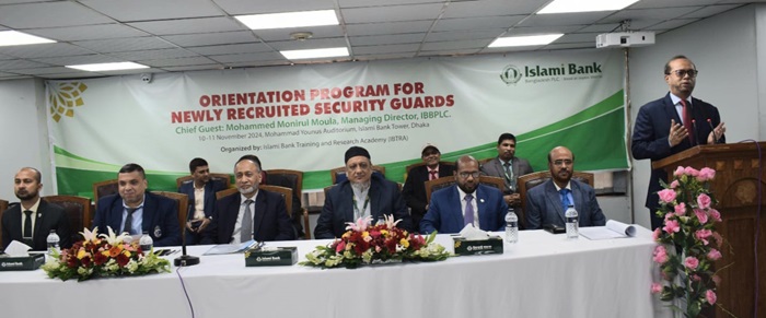 নিজস্ব প্রতিবেদক: ইসলামী ব্যাংক ট্রেনিং অ্যান্ড রিসার্চ একাডেমি (আইবিটিআরএ)- এর উদ্যোগে নতুন যোগদানকৃত সিকিউরিটি গার্ডদের ‘পেশাগত দক্ষতা অর্জন, প্রশিক্ষণ ও পরিচিতি কর্মসূচি’ বিষয়ক দিনব্যাপী ওরিয়েন্টেশন প্রোগ্রাম ১০ নভেম্বর ২০২৪, রবিবার ইসলামী ব্যাংক টাওয়ারে অনুষ্ঠিত হয়েছে।