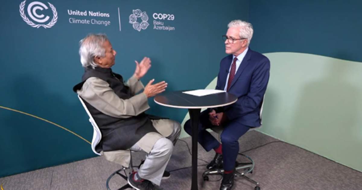 সম্প্রতি আজারবাইজানের রাজধানী বাকুতে অনুষ্ঠিত জাতিসংঘের জলবায়ু সম্মেলনে অংশ নেন অন্তর্বর্তী সরকারের প্রধান উপদেষ্টা ড. মুহাম্মদ ইউনূস। সম্মেলনের ফাঁকে কাতারভিত্তিক সম্প্রচারমাধ্যম আলজাজিরাকে দেয়া এক সাক্ষাৎকারে বাংলাদেশ নিয়ে তার বর্তমান ও ভবিষ্যৎ পরিকল্পনাসহ বিভিন্ন প্রশ্নের জবাব দেন।