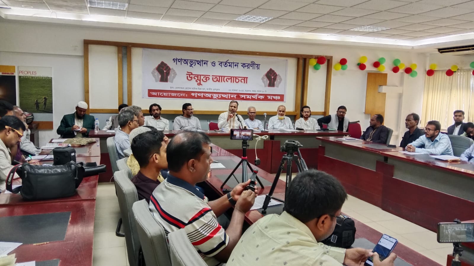 ঠিক এই মূহুর্তে একটি সত্যনিষ্ঠ প্লাটফর্ম প্রয়োজন যারা জুলাই গণঅভ্যুত্থানের চেতনা থেকে একচুলও সরবে না, যারা গণঅভ্যুত্থান প্রশ্নে কোন আপোষ করবে না, যারা শেষ রক্তবিন্দু দিয়ে হলেও জুলাই গণঅভ্যুত্থানকে সুরক্ষা করতে প্রস্তুত থাকবে। এই গণ অভ্যুত্থান যদি বেহাত হয়ে যায় তাহলে এর ভয়াবহ পরিনতি আমাদের ছাত্র-জনতাকেই বরন করতে হবে। এমতাবস্থায় , আমরা বেহাত হয়ে যাবার দ্ধারপ্রান্তে থাকা এই গণঅভ্যুত্থানকে রক্ষায় একসাথ হয়ে কাজ করা জরুরি হয়ে পরেছে। আলোচনায় বক্তারা গণঅভ্যুত্থান সমর্থক মঞ্চ আথবা জুলাই গণঅভ্যুত্থান সুরক্ষা মঞ্চ নামে একটি নতুন প্ল্যাটফর্ম গঠনে সম্মত হয়েছে। যেখানে জুলাই বিপ্লবে অংশগ্রহণকারী সকল বিপ্লবী ছাত্র-জনতার অংশগ্রহন থাকবে।