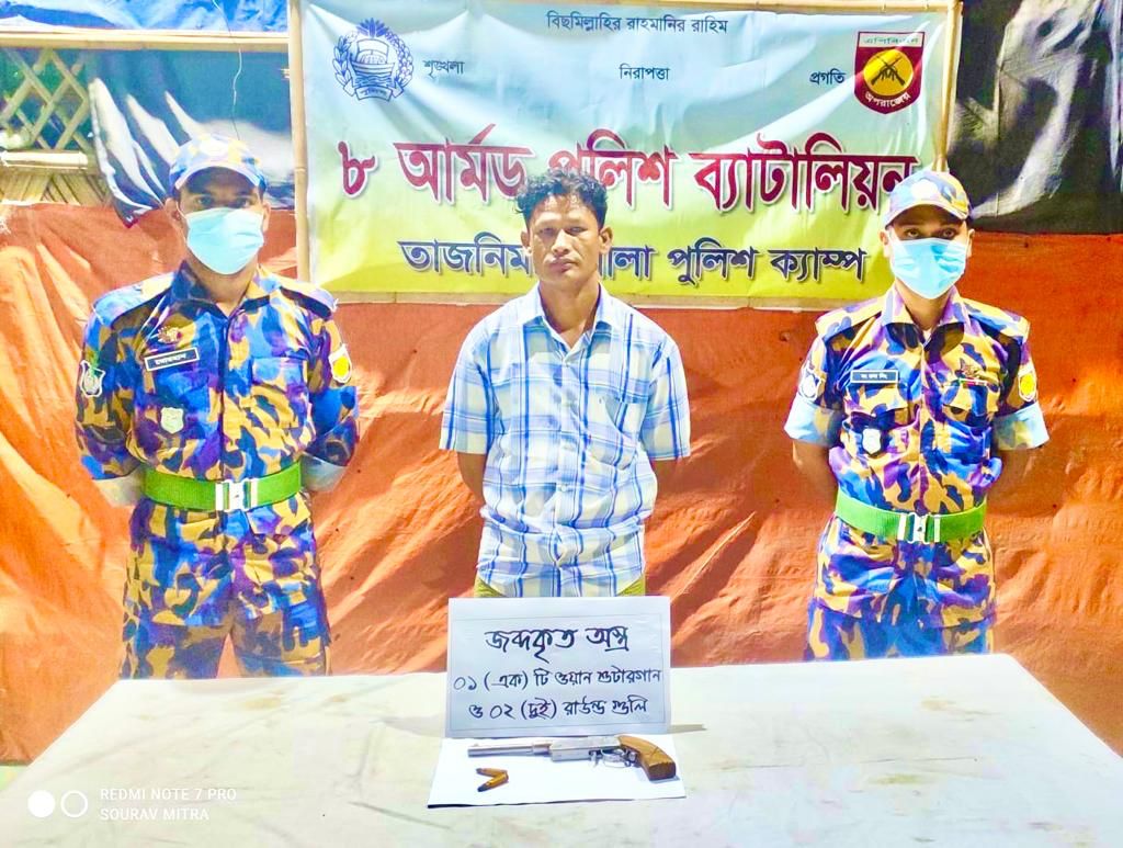 শুক্রবার(২২ এপ্রিল) সকালে অস্ত্র ও গুলি উদ্ধারের সত্যতা নিশ্চিত করে ৮এপিবিএর অতিরিক্ত পুলিশ সুপার মো. কামরান হোসেন জানান,ক্যাম্পে নিয়মিত অভিযানের অংশ হিসেবে গোপন সংবাদের ভিত্তিতে ২২ এপ্রিল(শুক্রবার) রাত তিনটার দিকে তাজনিমারখোলা পুলিশ ক্যাম্পের আওতাধীন ক্যাম্প-১৩ এর এফ-২ ব্লকের রোহিঙ্গা মোহাম্মদ ইলিয়াছ(৪৫) এর বসতঘরে অভিযান চালিয়ে একটি ওয়ান শুটারগান ও দুই রাউন্ড গুলিসহ তাকে গ্রেফতার করা হয়। গ্রেফতার রোহিঙ্গা মোহাম্মদ ইলিয়াছ ক্যাম্প-১৩ এর সোনা আলি প্রকাশ সোনা মিয়ার ছেলে।
