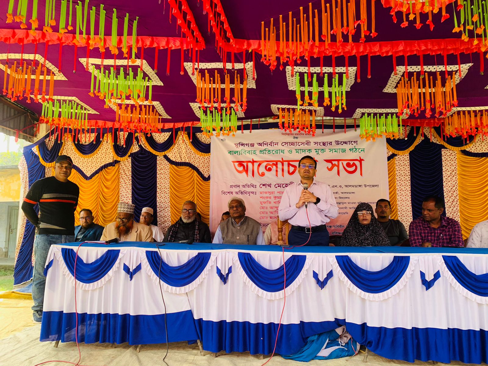 নিজস্ব প্রতিবেদকঃ চুয়াডাঙ্গা জেলার আলমডাঙ্গা উপজেলার মুন্সিগঞ্জে সামাজিক সংগঠন অণির্বান সেচ্ছাসেবী সংস্থার উদ্যোগে বাল্যবিবাহ প্রতিরোধ ও মাদকমুক্ত সমাজ গঠনের লক্ষ্যে একটি আলোচনা সভা অনুষ্ঠিত হয়েছে। শনিবার, ২৩ নভেম্বর সকাল ১০টায় মুন্সিগঞ্জ বালিকা উচ্চ বিদ্যালয়ে এ সভা অনুষ্ঠিত হয়। এতে শিক্ষার্থী, শিক্ষক ও স্থানীয় গণ্যমান্য ব্যক্তিবর্গ উপস্থিত ছিলেন।