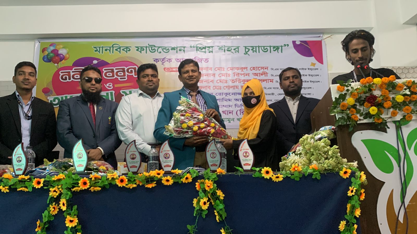 নিজস্ব প্রতিবেদকঃ চুয়াডাঙ্গা সোনালী ইন্স্যুরেন্স কোম্পানি কনফারেন্স রুমে বুধবার ২৭ এ নভেম্বর দুপুরে অনুষ্ঠিত হলো প্রিয় শহর চুয়াডাঙ্গা মানবিক ফাউন্ডেশনের নবীনবরণ অনুষ্ঠান। নবাগত অ্যাডমিন ও মডারেটরদের ফুল দিয়ে শুভেচ্ছা জানিয়ে বরণ করেন ফাউন্ডেশন কর্তৃপক্ষ।