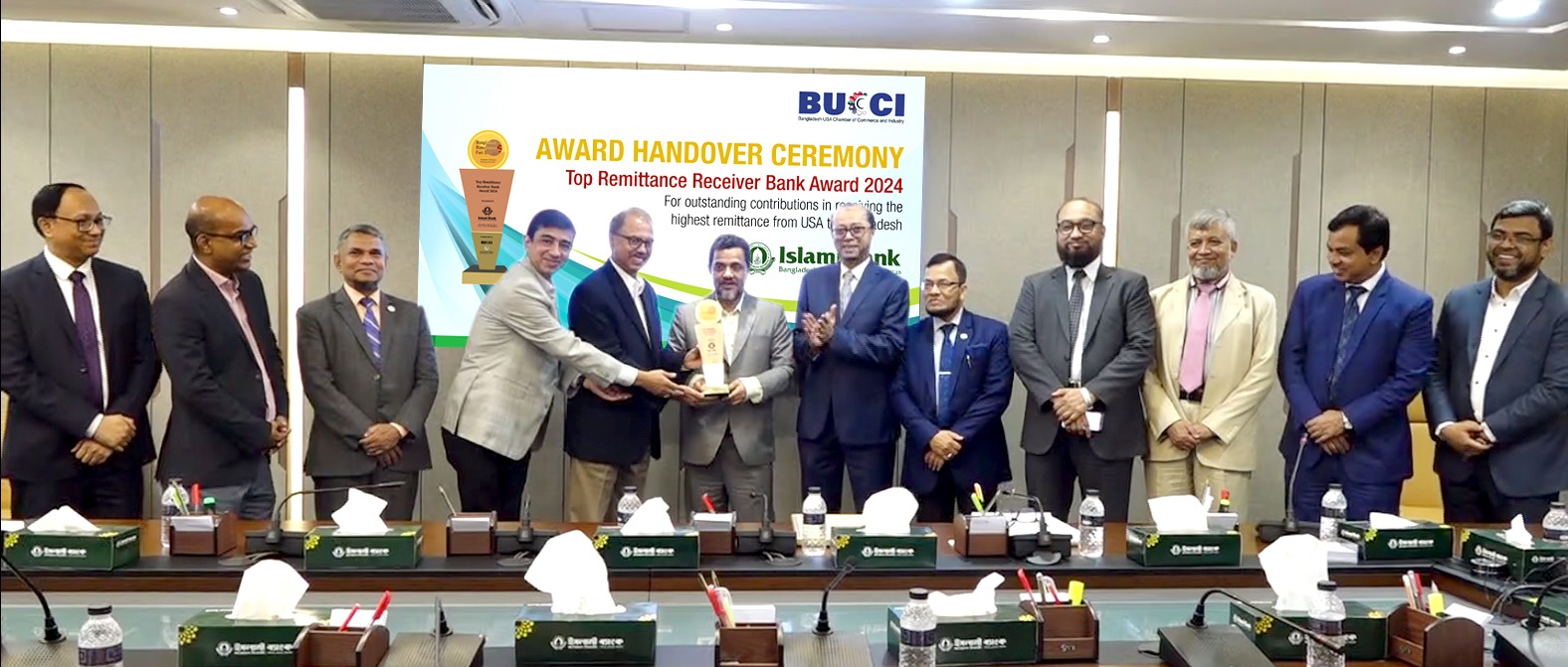 নিজস্ব প্রতিবেদকঃ ইসলামী ব্যাংক বাংলাদেশ পিএলসি সম্প্রতি যুক্তরাষ্ট্রের নিউইয়র্কে আয়োজিত বাংলাদেশ রেমিট্যান্স ফেয়ার এ ঘোষিত “টপ রেমিট্যান্স রিসিভার ব্যাংক অ্যাওয়ার্ড ২০২৪” পুরস্কার পেয়েছে। এ উপলক্ষে ১ ডিসেম্বর ২০২৪, রবিবার ইসলামী ব্যাংক টাওয়ারে আয়োজিত অনুষ্ঠানে ব্যাংকের চেয়ারম্যান ওবায়েদ উল্লাহ আল মাসুদ এর নিকট ক্রেস্ট ও সার্টিফিকেট হস্তান্তর করেন বাংলাদেশ-যুক্তরাষ্ট্র চেম্বার অব কমার্স এন্ড ইন্ডাস্ট্রির সিনিয়র ভাইস প্রেসিডেন্ট রায়হানুল ইসলাম চৌধুরী। উল্লেখ্য বাংলাদেশ-আমেরিকান চেম্বার অব কমার্স অ্যান্ড ইন্ডাস্ট্রি, মুক্ত ধারা নিউইয়র্ক এবং ইউএস-বাংলা বিজনেস লিংক এর যৌথ উদ্যোগে আয়োজিত রেমিট্যান্স ফেয়ারে ইসলামী ব্যাংকের মার্কিন যুক্তরাষ্ট্র থেকে সর্বোচ্চ প্রবাসী আয় সংগ্রহের মাধ্যমে বাংলাদেশে ক্রমাগত রিজার্ভ বৃদ্ধি এবং অর্থনৈতিক প্রবৃদ্ধিতে অসামান্য অবদান রাখায় এ সম্মাননা ঘোষণা করে।