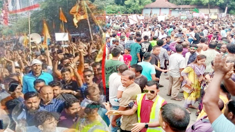এদিকে বিএসএফ ও ভারতীয় পুলিশের ব্যারিকেডের কারণে বিক্ষোভকারী ভারতীয় হিন্দু মঞ্চের নেতারা সুতারকান্দি স্থলবন্দর পর্যন্ত আসতে পারেনি। ওখানেই তাদের আটকে দেয়া হয়েছে বলে জানা গেছে। সামাজিক যোগাযোগ মাধ্যমে ছড়িয়ে পড়া ভিডিওতে আসামের বরাক ভ্যালীর এক হিন্দু নেতা ক্ষোভের সঙ্গে বলতে থাকেন, জীবন গেলে যাবে, তবুও তারা বাংলাদেশে যাবেন। বাংলাদেশে সংখ্যালঘু সম্প্রদায়ের ওপর নির্যাতনের প্রতিবাদে তারা এই মার্চ করছেন বলে দাবী করেন।