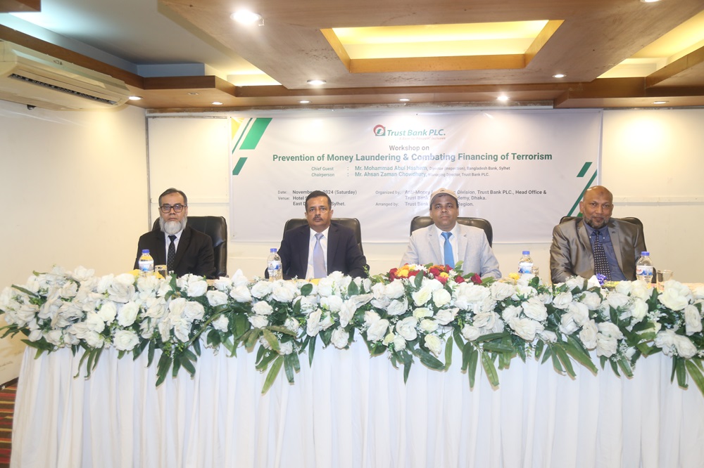 নিজস্ব প্রতিবেদকঃ মানি লন্ডারিং ও সন্ত্রাসী কর্মকান্ডে অর্থায়ন প্রতিরোধ শীর্ষক প্রশিক্ষন কর্মশালা” গত ৩০ নভেম্বর ২০২৪ ইং রোজ শনিবার হোটেল স্টার পেসিফিক দরগা গেইট সিলেটে ট্রাস্ট ব্যাংক পিএলসি এর মানি লন্ডারিং ডিভিশন ও ট্রেনিং একাডেমি এর ব্যবস্থাপনায় দিন ব্যাপি এক প্রশিক্ষণ কর্মশালা অনুষ্ঠিত হয় ।