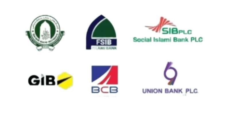 ব্যাংকগুলো হলো— ইসলামী ব্যাংক বাংলাদেশ পিএলসি, সোশ্যাল ইসলামী ব্যাংক, ফার্স্ট সিকিউরিটি ইসলামী ব্যাংক, ইউনিয়ন, গ্লোবাল ইসলামী ও বাংলাদেশ কমার্স ব্যাংক।