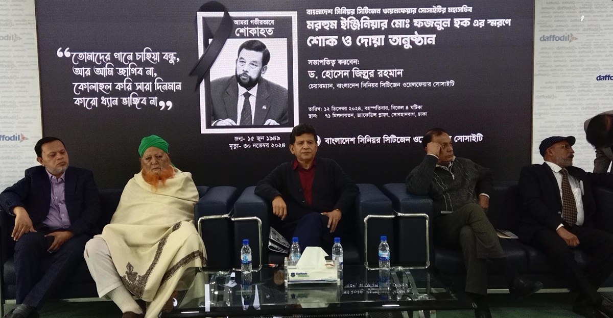 উল্লেখ্য কিংবদন্তির সংগঠক, সমাজ রূপ কল্পক সংস্কারক প্রকৌশলী মোহাম্মদ ফজলুল হক না ফেরার দেশে চলে গেছেন ৩০ নভেম্বর ২০২৪। তাঁর হৃদয়ের বোধের সৃষ্টির মাঝে বিদ্যমান ছিল লক্ষ কোটি ভালবাসার সৃষ্টির অলিন্দ। ভালোবাসার সেই আপনার মানুষটি সম্পর্কে আনুষ্ঠানিক আবেগ ময় স্মরণ করলেন তাঁর আত্মজনরা। তাঁর হাতেগড়া প্রতিষ্ঠান বাংলাদেশ সিনিয়র সিটিজেন ওয়েলফেয়ার সোসাইটির আয়োজনে, ধানমন্ডির ড্যাফোডিল প্লাজার একাত্তর মিলনায়তনে স্মরণ দোয়া ও শোক সমাবেশে। সেলাই খুলে যাওয়া বোতামের মতো আমরা সবাই এদিক ওদিক ছিটকে পড়ছি — ফজলু ভাই ছিলেন আমাদের অদৃশ্য সুতো।