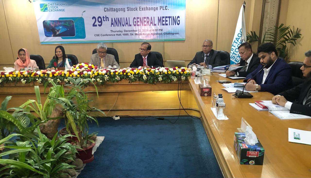 চিটাগং স্টক এক্সচেঞ্জ পিএলসি (সিএসই) এর ২৯ তম বার্ষিক সাধারন সভা ডিসেম্বর ১২, ২০২৪ইং তারিখে চট্টগ্রামে অবস্থিত সিএসই এর প্রধান কার্যালয়ে অনুষ্ঠিত হয়েছে। এতে সভাপতিত্ব করেন সিএসই-এর চেয়ারম্যান জনাব একেএম হাবিবুর রহমান ।