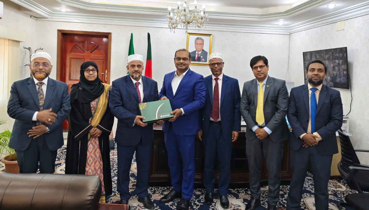 নিজস্ব প্রতিবেদকঃ ইসলামী ব্যাংক বাংলাদেশ পিএলসি এর চেয়ারম্যান ওবায়েদ উল্লাহ আল মাসুদ সৌদি আরবের জেদ্দায় বাংলাদেশের কনসাল জেনারেল মিয়া মোঃ মাইনুল কবিরের সাথে ১২ ডিসেম্বর ২০২৪ সৌজন্য সাক্ষাৎ করেন।