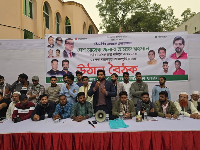 স্টাফ রিপোর্টার: বিএনপির ভারপ্রাপ্ত চেয়ারম্যান তারেক রহমান কর্তৃক ঘোষিত রাষ্ট্র কাঠামো মেরামতের ৩১ দফা দাবী বাস্তবায়নের লক্ষ্যে বিএনপির নির্বাহী কমিটির সদস্য মোস্তাফিজুর রহমান ভূঁইয়া দিপুর নির্দেশনায় নারায়ণগঞ্জের রূপগঞ্জে ছাত্রদলের উঠান বৈঠক অনুষ্ঠিত।