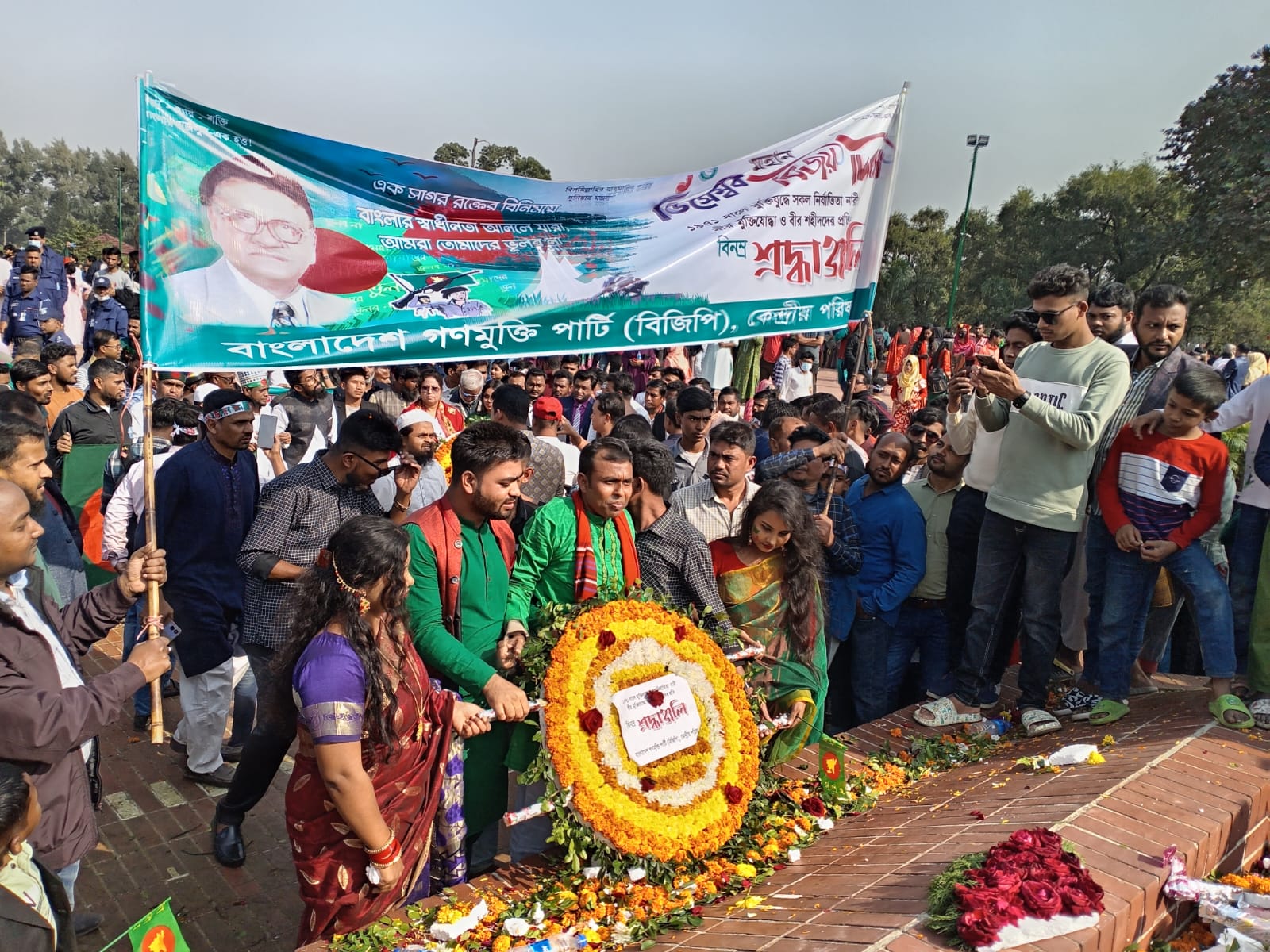 নিজস্ব প্রতিবেদকঃ মহান বিজয় দিবসে বাংলাদেশ গণমুক্তি পার্টির আহ্বায়ক এম এ আলীম সরকারের নেতৃত্বে জাতীয় স্মৃতিসৌধে পুষ্পস্তবক অর্পণ করে বীর মুক্তিযোদ্ধা ও শহীদদের প্রতি গভীর শ্রদ্ধা নিবেদন করেন পার্টির নেতাকর্মীরা। শ্রদ্ধা নিবেদন শেষে এক বিবৃতিতে এম এ আলীম সরকার বলেন, ১৬ই ডিসেম্বর মহান বিজয় দিবসরূপে আমরা উদযাপন করে আসছি। এতে মুক্তিযুদ্ধকালীন এবং তার পটভূমি সম্পর্কে আলোচনা হয়ে থাকে।