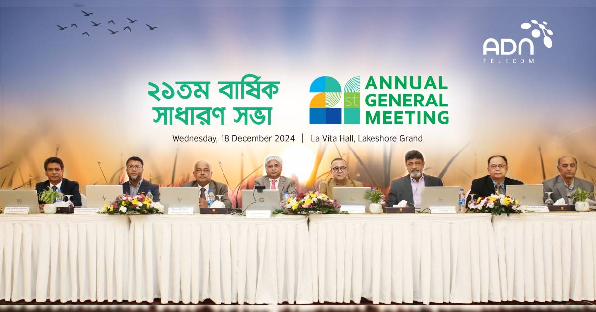 এডিএন টেলিকম লিমিটেডের ২১তম বার্ষিক সাধারণ সভা (এজিএম) সফলভাবে সম্পন্ন হয়েছে। শেয়ারবাজারে তালিকাভুক্তির পর এটি ছিল কোম্পানির প্রথম হাইব্রিড এজিএম যেখানে সরাসরি ও অনলাইনে অংশগ্রহণের সুযোগ ছিল। সভায় সমাপ্ত হিসাববছরের জন্য ঘোষিত নগদ লভ্যাংশ অনুমোদিত হয়।