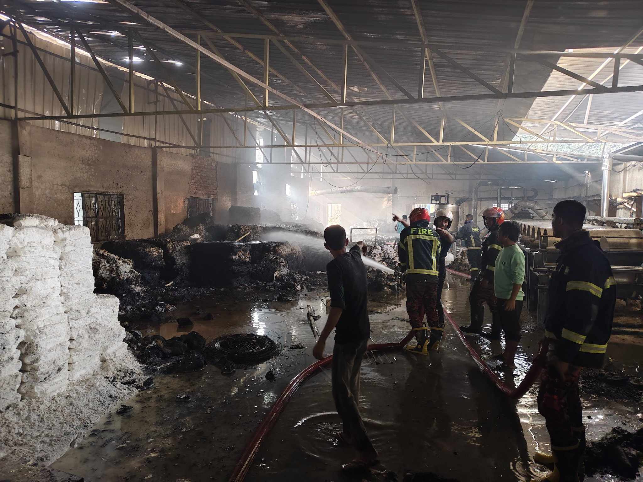 এ ঘটনায় কারখানার ভীতরে থাকা তুলা,বালি,বকরম, চক, সুতার বাঁধন ও মেশিনারিজ পুরে ছাই হয়ে যায়।