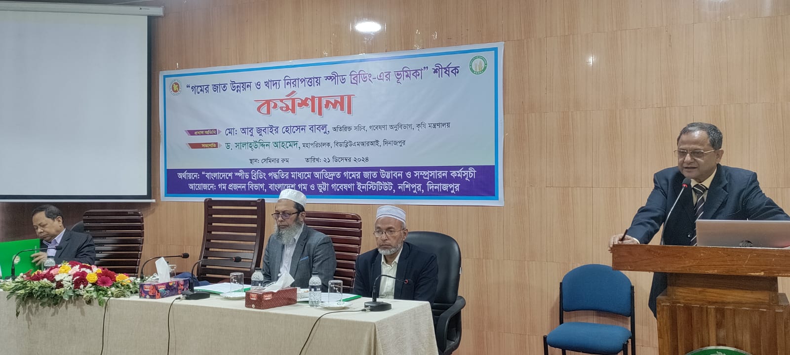 শনিবার দুপুরে বাংলাদেশ গম ও ভুট্টা গবেষণা ইনস্টিটিউটের হলরুমে “গমের জাত উন্নয়ন ও খাদ্য নিরাপত্তায় স্পীড ব্রীডিং-এর ভুমিকা” শীর্ষক কর্মশালায় ইনস্টিটিউটটের মহা পরিচালক ড. সালাহ্উদ্দিন আহমেদ এর