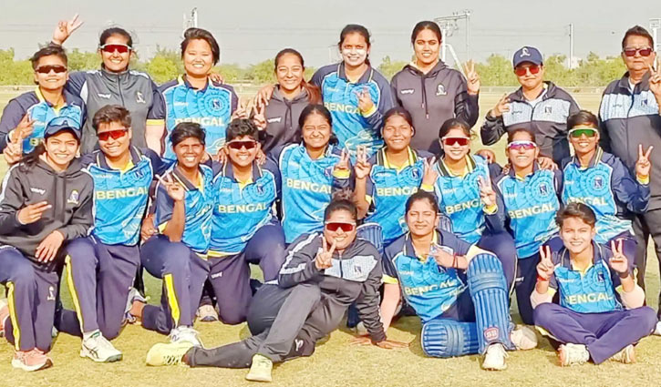 জবাব দিতে নেমে বাংলার মেয়েরাও ঝড় তোলে ব্যাট হাতে। ৯ ওভারেই তুলে ফেলে ১০০ রান। এ সময় দারা গুজার ৪৯ বলে ৬৯ ও স্বস্তি মন্ডল ২৯ বলে করেন ৫২ রান। ওয়ান ডাউনে নামা তনুশ্রী সরকার ৮৩ বলে ২০ চারে ১১৩ রানের ইনিংস খেলেন। এরপর উইকেটরক্ষক ব্যাটার প্রিয়াংকা বালা ৮টি চার ও ১ ছক্কায় ৮৮ রানের ইনিংস খেলে জয়টা নাগালে নিয়ে আসেন। শেষ দিকে প্রতিভা ২৮ ও ঋষিতা বসু ১১ রানের ইনিংস খেলে ৪৯.১ ওভারে রেকর্ড রান তাড়া করার জয় নিশ্চিত করেন। নিশ্চিত করেন সেমিফাইনাল।