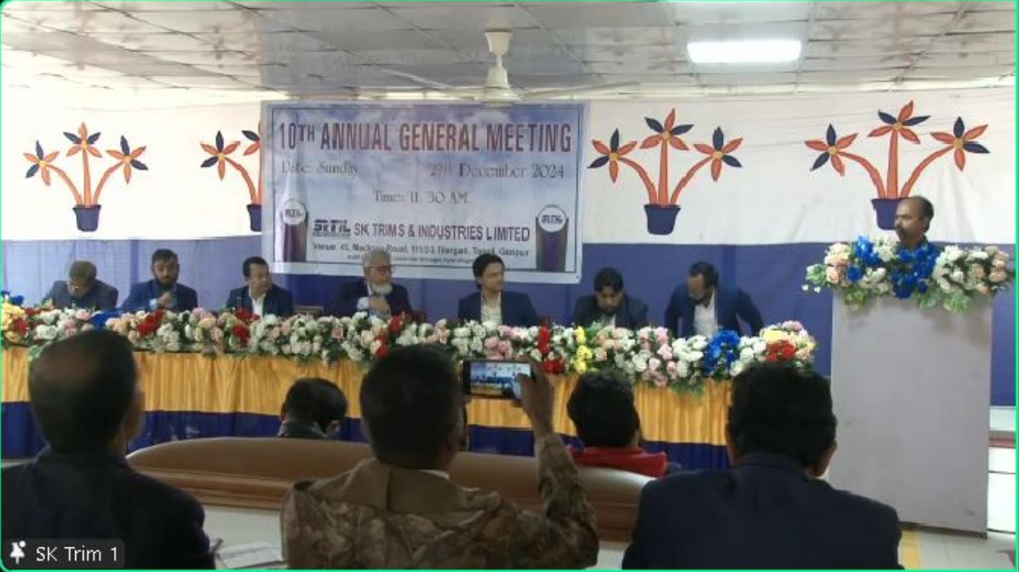 পুঁজিবাজারের তালিকাভুক্ত কোম্পানি এস কে ট্রিমস এন্ড ইন্ডাস্ট্রিজ লিমিটেডের ১০ম বার্ষিক সাধারণ সভা অনুষ্ঠিত হয়েছে। রোববার (২৯ ডিসেম্বর) সকাল সাড়ে ১১ টায় কোম্পানির ফ্যাক্টরিতে অনুষ্ঠিত এ সভায় শেয়ারহোল্ডারদের ভোটের মাধ্যমে ১ দশমিক ৭৫ শতাংশ নগদ লভ্যাংশ অনুমোদিত হয়।