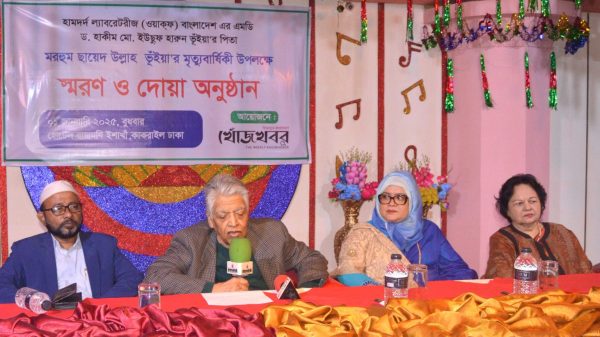 নিজস্ব প্রতিবেদকঃ হামদর্দ ল্যাবরেটরীজ (ওয়াক্ফ) বাংলাদেশ’র এমডি ড. হাকীম মো. ইউছুফ হারুন ভূঁইয়া’র পিতা মরহুম ছায়েদ উল্লাহ ভূঁইয়া’র মৃত্যুবার্ষিকী উপলক্ষে স্মরণসভা ও দোয়া অনুষ্ঠিত হয়েছে। বুধবার (০১জানুয়ারি) রাজধানীর কাকরাইলস্থ হোটেল রাজমনী ঈশা খাঁ ব্যাংকুইট হলে অনুষ্ঠানটি আয়োজন করে সাপ্তাহিক খোঁজখবর।