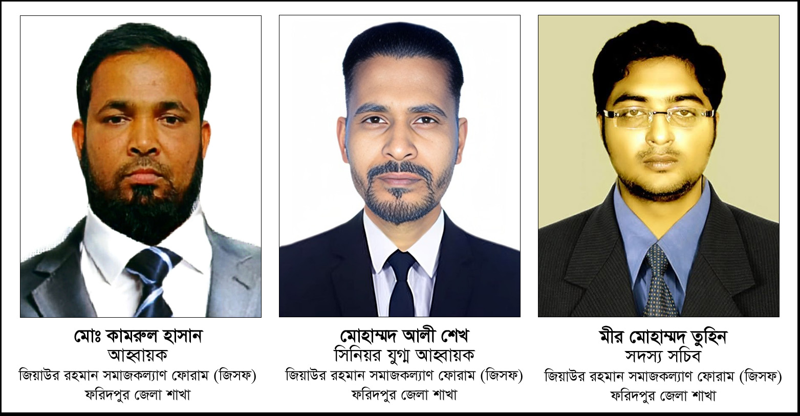 ফরিদপুর শাখা আহ্বায়ক কমিটি গঠন সম্পর্কে জিয়াউর রহমান সমাজকল্যাণ ফোরাম (জিসফ) এর কেন্দ্রীয় সভাপতি মনজুর রহমান ভূঁইয়া, সাধারণ সম্পাদক মোঃ শাহ্ আলম ও সাংগঠনিক সম্পাদক এইচ এম স্বপন রানা বলেন, জিয়াউর রহমান সমাজকল্যাণ ফোরাম (জিসফ) জাতীয়তাবাদী আদর্শের সৈনিকদের পাশে থেকে দেশে গণতন্ত্র প্রতিষ্ঠার সকল আন্দোলন সংগ্রামে সক্রিয় অংশগ্রহণ করে আসছে। ফরিদপুর শাখা কমিটি জিসফ কে আরো শক্তিশালী করবে বলে আমরা প্রত্যাশা করি।