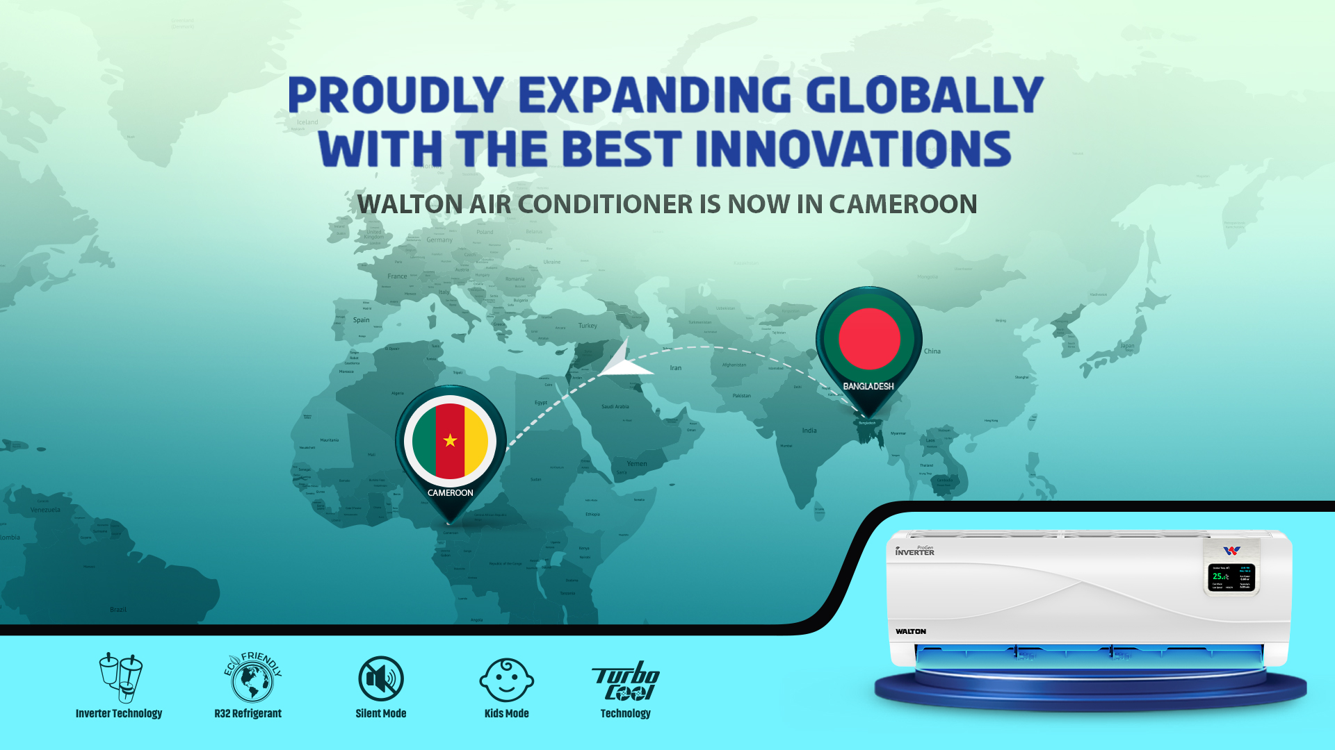 ওয়ালটন এসির চিফ বিজনেস অফিসার মো. তানভীর রহমান জানান, বিশ্বের অন্যতম সেরা গেøাবাল ব্র্যান্ড হয়ে উঠার লক্ষ্যে নিয়ে এগিয়ে যাচ্ছে ওয়ালটন। সেজন্য ইউরোপ, আমেরিকা, আফ্রিকা, মধ্যপ্রাচ্য, এশিয়া অঞ্চলের উন্নত দেশগুলোতে নিজস্ব ব্র্যান্ড বিজনেস সম্প্রসারণে কাজ করছে ওয়ালটন। এরই ধারাবাহিকতায় মধ্য আফ্রিকার দেশ ক্যামেরুনে ওয়ালটন এসির বাজার সম্প্রসারণ করা হয়েছে। আফ্রিকান অঞ্চলে ক্যামেরুন খুবই সম্ভাবনাময় এক বাজার। ক্যামেরুনে এসি রপ্তানির মাধ্যমে মধ্য আফ্রিকার অন্যান্য দেশেও ওয়ালটনের এসিসহ অন্যান্য পণ্যের ব্যাপক বাজার সম্প্রসারণের সুযোগ সৃষ্টি হয়েছে।