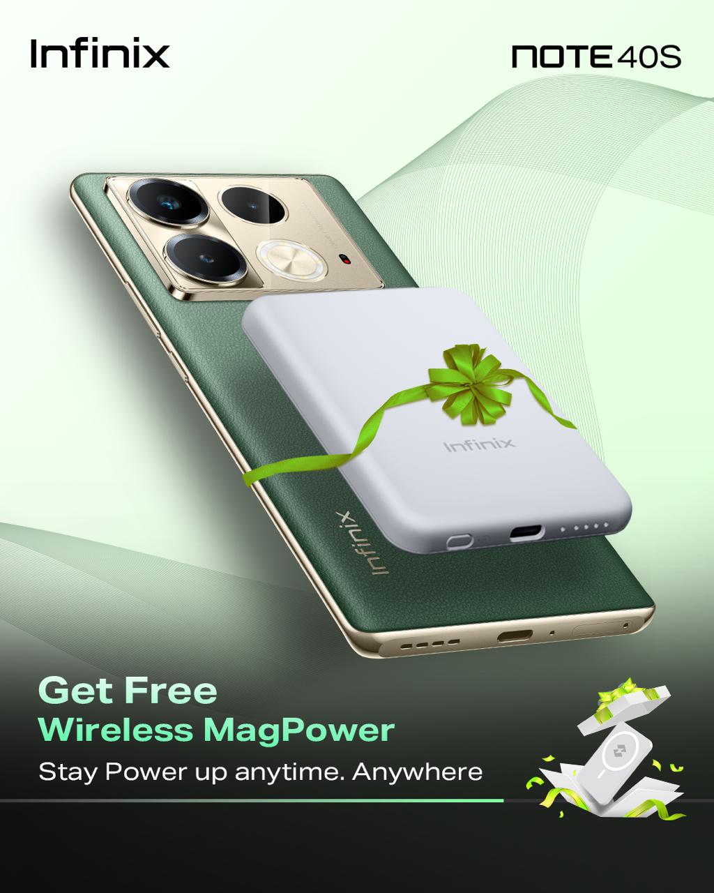 ৮ জানুয়ারি থেকে অনুমোদিত খুচরা বিক্রেতা এবং অনলাইন প্ল্যাটফর্মে বিনামূল্যে পাওয়া যাবে ম্যাগপাওয়ার ওয়্যারলেস চার্জারসহ ইনফিনিক্স নোট ৪০ এস।