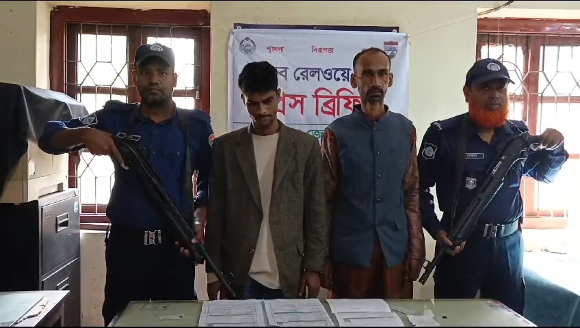 শুক্রবার (১০ জানুয়ারি) রাতে রেলওয়ে জংশনের ১ নং প্লাটফর্মে তাদেরকে আটক করা হয়েছে। এ সময় তাদের তল্লাসী করে বিভিন্ন রুটের ২৪ আসন বিশিষ্ট ৭ টি টিকেট পাওয়া যায়।