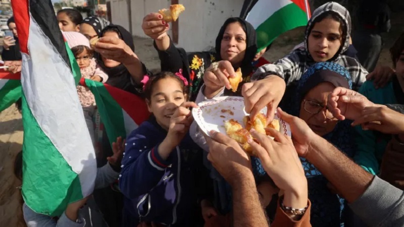 এক তরুণ ফিলিস্তিনি বলেন, ‘সবাই খুশি, বিশেষ করে শিশুরা।