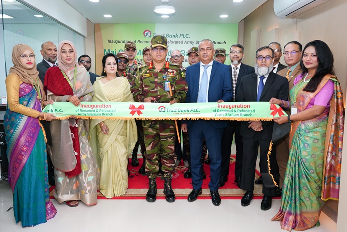 মেজর জেনারেল মো: মাসুদুর রহমান, এনডিসি, পিএসসি, এডজুটেন্ট জেনারেল, বাংলাদেশ সেনাবাহিনী এবং ভাইস চেয়ারম্যান, ট্রাস্ট ব্যাংক পিএলসি. ২১ জানুয়ারি, ২০২৫ আর্মি স্টেডিয়াম শাখার আনুষ্ঠানিক উদ্বোধন করেন।