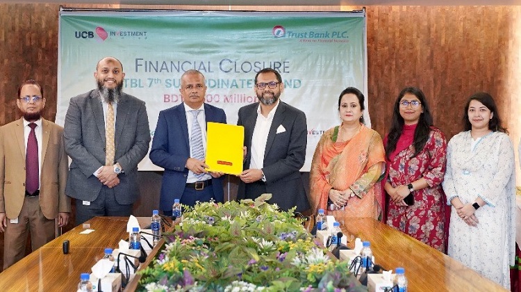 ইউসিবি ইনভেস্টমেন্ট লিমিটেড সফলভাবে ট্রাস্ট ব্যাংক পিএলসির “টিবিএল ৭ম সাব-অর্ডিনেটেড বন্ড” ইস্যু সম্পন্ন করেছে, যার মোট মূল্য ৪৫০ কোটি টাকা। সম্প্রতি (২২ জানুয়ারি ২০২৫) রাজধানী ঢাকার ট্রাস্ট ব্যাংক পিএলসির প্রধান কার্যালয়ে এই বন্ড ইস্যুর সমাপনী অনুষ্ঠানের আয়োজন করা হয়।