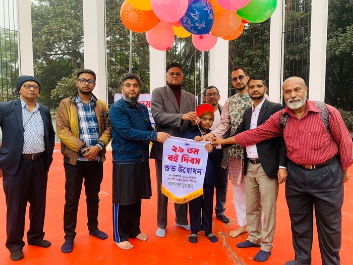 নিজস্ব প্রতিবেদকঃ বাংলাদেশ বুক ক্লাব’র উদ্যোগে ১লা ফেব্রুয়ারি ২০২৫, শনিবার, সকাল ৮ টায়, ভাষা শহীদ স্মরণে কেন্দ্রীয় শহীদ মিনারে শ্রদ্ধাঞ্জলি নিবেদন এবং বেলুন উড়িয়ে ২৯তম বই দিবস উপলক্ষে মাসব্যাপী অনুষ্ঠানমালার উদ্বোধন ঘোষনা করা হয়। উদ্বোধন ঘোষনা করেন বাংলাদেশ বুক ক্লাব’র সভাপতি, প্রাক্তন রাষ্ট্রদূত ও সচিব মসয়ূদ মান্নান এনডিসি। বক্তব্য রাখেন- বুক ক্লাব'র অন্যতম উপদেষ্টা প্রফেসর ড. সেলিমা সাঈদ, মহাসচিব সালাহউদ্দীন কুটু, সঙ্গীত শিল্পী জামিউর রহমান লেমন, সাংগঠনিক সম্পাদক মাহমুদ খান বিজু। অন্যান্যদের মধ্যে উপস্হিত ছিলেন, কে. এ. এস চয়ন রাজা, মেরিনা সাঈদ প্রমুখ। মাসব্যাপী অনুষ্ঠানমালার মধ্যে রয়েছে, শিশুদের ছড়া, কবিতা ও চিত্রাংকন প্রতিযোগিতা, পুরস্কার বিতরণ, বিষয়ভিত্তিক আলোচনা, সাহিত্যানুষ্ঠান ইত্যাদি।