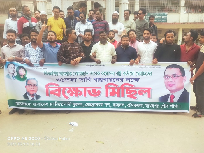 উপজেলা পরিষদ সামনে থেকে বিক্ষোভ মিছিল বের করে শহর প্রদক্ষিণ শেষে উপজেলা পরিষদের সামনে মিছিলটি শেষ হয়। বিপুল সংখ্যক নেতা-কর্মীদের নিয়ে দীর্ঘ মিছিলটি শহরের গুরুত্বপূর্ণ সড়ক প্রদক্ষিণ করে। এসয় তারা তারেক রহমানের ৩১ দফা বাস্তবায়নে নানা শ্লোগান দেন।