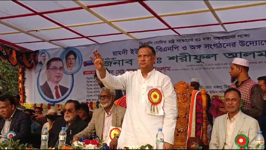 এ সময় সঞ্চানলায় ছিলেন,রামদী ইউনিয়ন বিএনপি সাধারণ সম্পাদক শাফি উদ্দিন শাফি মিয়া।
