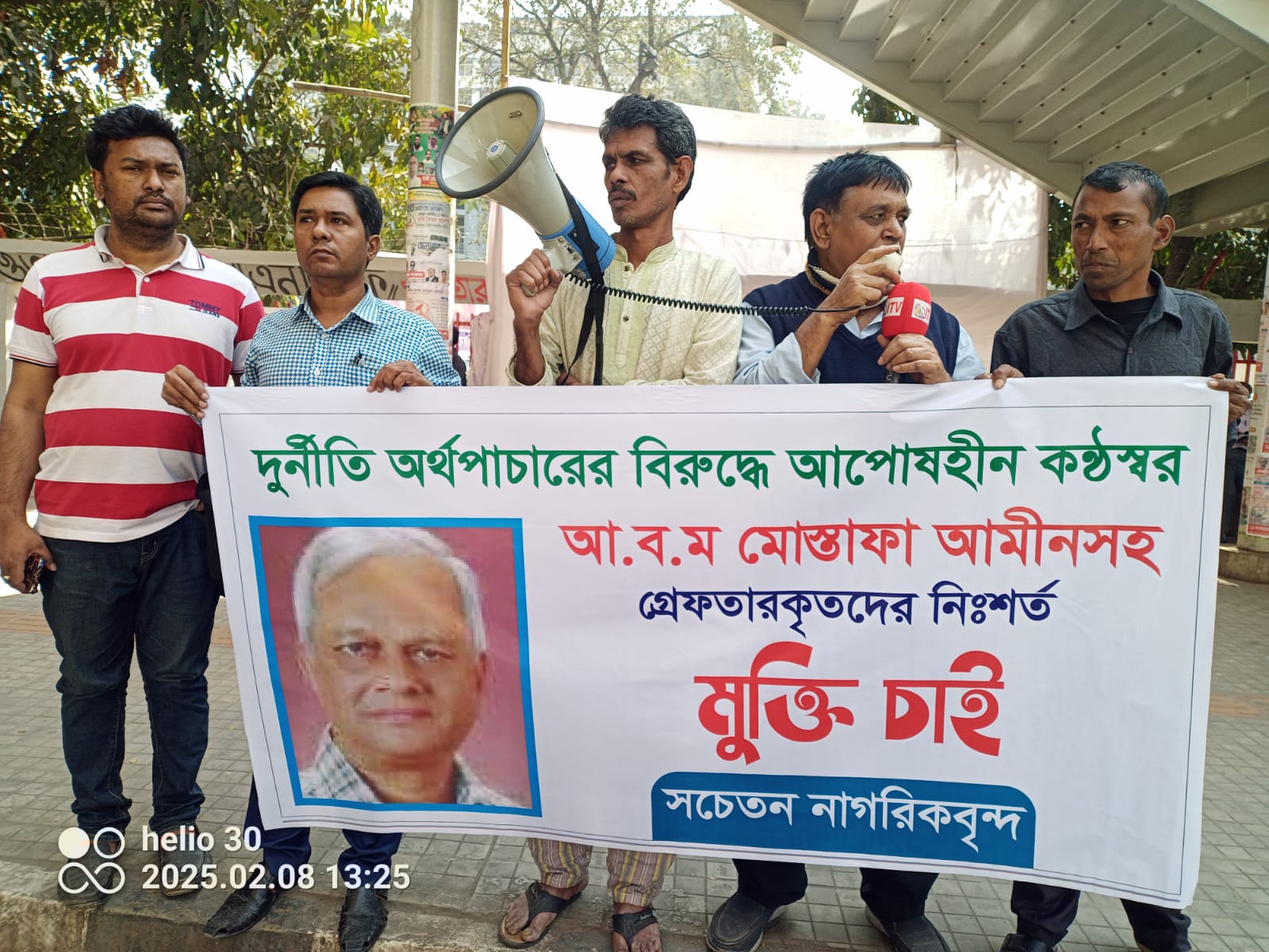 নিজস্ব প্রতিবেদকঃ ৮ ফেব্রুয়ারি রোজ শনিবার বেলা ১ টায় জাতীয় প্রেসক্লাবের সামনে আ ব ম মোস্তফা আমীন সহ গ্রেফতারকৃতদের মুক্তির দাবিতে মানববন্ধন অনুষ্ঠিত হয়েছে।
