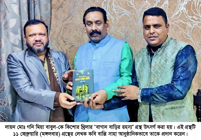 লায়ন মোঃ গনি মিয়া বাবুল-কে কিশোর থ্রিলার ‘বাগান বাড়ির রহস্য’ গ্রন্থ উৎসর্গ করা হয়। এই গ্রন্থটি ১১ ফেব্রুয়ারি (মঙ্গলবার) সন্ধ্যায় লেখক উন্নয়ন কেন্দ্রের কার্যালয়ে গ্রন্থের লেখক কবি বাপ্পি সাহা আনুষ্ঠানিকভাবে তাকে প্রদান করেন। এসময় লায়ন মোঃ গনি মিয়া বাবুল গ্রন্থের ও লেখকের সফলতা কামনা করে উল্লেখিত কথা বলেন।
