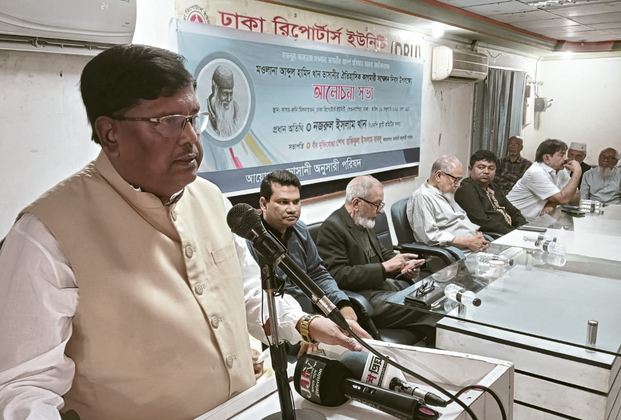নিজস্ব প্রতিবেদকঃ বর্ষিয়ান রাজনীতিবিদ, বিএনপি স্থায়ী কমিটির সদস্য নজরুল ইসলাম খান মওলানা ভাসানীকে আমাদের মহান স্বাধীনতার স্থপতি উল্লেখ করেন। তিনি বলেন, মজলুম জননেতা মওলানা ভাসানী একজন দূরদর্শী রাজনৈতিক। ১৯৫৭ সালে তিনি কাগমারী সম্মেলনে পাকিস্তানীদের উদ্দেশ্যে ‘আস্সালামু আলাইকুম’ বলে তাদের থেকে আলাদা হওয়ার ইঙ্গিত দিয়েছিলেন এবং সেই ধারাবাহিকতায় ১৯৭১ সালে মহান মুক্তিযুদ্ধ ও আমাদের গৌরবময় স্বাধীনতা অর্জন। মওলানা ভাসানী বাংলাদেশের স্বাধীনতা-সার্বভৌমত্ব সংরক্ষণ, দেশের জনগণের অর্থনৈতিক মুক্তি এবং আইনের শাসন প্রতিষ্ঠা ও জাতীয় ঐক্যের যে বাণী রেখে গেছেন তা আমাদের জন্য অনুকরণীয় দৃষ্টান্ত। ১৬ ফেব্রুয়ারি রবিবার বেলা ১১ টায় ঢাকা রিপোর্টার্স ইউনিটির সাগর-রুনি মিলনায়তনে ভাসানী অনুসারী পরিষদের আয়োজনে কাগমারী সম্মেলন দিবস উপলক্ষে অনুষ্ঠিত আলোচনা সভায় প্রধান অতিথির বক্তব্যে তিনি উপরিউক্ত কথা বলেন।