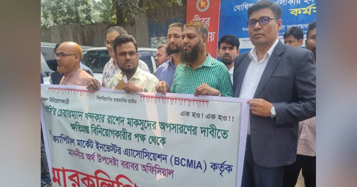 পুঁজিবাজারে টানা মন্দাভাব, আস্থা ফিরাতে না পারা ও অদক্ষতার অভিযোগে পুঁজিবাজার নিয়ন্ত্রক সংস্থা বাংলাদেশ সিকিউরিটিজ অ্যান্ড এক্সচেঞ্জ কমিশনের (বিএসইসি) চেয়ারম্যান খন্দকার রাশেদ মাকসুদের অপসারণ দাবি করে অর্থ মন্ত্রণালয়ের উপদেষ্টা ড. সালেহউদ্দিন আহমেদ কাছে স্মারকলিপি প্রদান করেছে বিনিয়োগকারীদের সংগঠন বাংলাদেশ ক্যাপিটাল মার্কেট ইনভেস্টর অ্যাসোসিয়েশন (বিসিএমআইএ)।