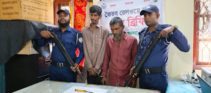 রেলওয়ে পুলিশ সুত্রে জানা যায়, মঙ্গলবার (২৫ফেব্রুয়ারি) দিবাগত রাতে ভৈরব রেলওয়ে স্টেশনের প্লাটফর্মে ডিউটি করা কালে সময়ে গোপন সংবাদের ভিত্তিতে ভৈরব বাজার জংশনের পূর্ব দিকে মাইল পোষ্ট মধ্যবর্তী স্থানে কয়েকজন লোক ছিনতাইকরার উদ্দ্যেশ্যে প্রস্তুতি গ্রহণ করছে। পরবর্তীতে এসআই আফজাল হোসেনসহ এসআই মুরাদ হোসেনের নেতৃত্বে একটি দল ঘটনাস্থলে যায়। ছিনতাইকারীরা টের পেয়ে দৌড়ে পালানোর চেষ্টা করলে পুলিশ দুজনকে আটক করে। এসময় তাদের কাছ থেকে ০২টি স্টিলের চাকু উদ্ধার করা হয়। এছাড়াও চিনতাইকারী জনির বিরুদ্ধে ভৈরব থানায় একাদিক মামলা রয়েছে।