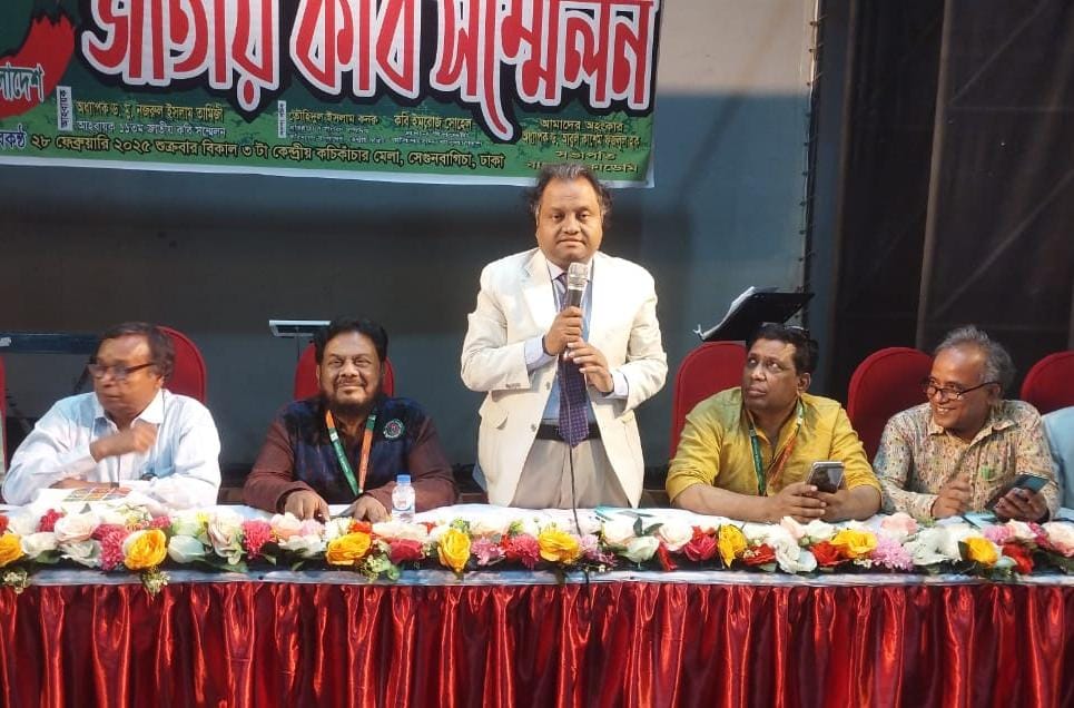 নিজস্ব প্রতিবেদকঃ কবিদের মর্যাদা সংরক্ষণ ও সম্মানী ভাতা প্রদানের দাবী জানিয়েছেন কবি সংসদ বাংলাদেশ স্থায়ী কমিটির চেয়ারম্যান কবি অধ্যাপক ড. মু. নজরুল ইসলাম তামিজী। ২৮ ফেব্রুয়ারি শুক্রবার বিকেল ৪টায় রাজধানীর কচিকাঁচা মিলনায়তনে ‘বৈষম্যহীন রাষ্ট্র ও সমাজ বিনির্মানে কবিতা' স্লোগানে অনুষ্ঠিত '১১তম জাতীয় কবি সম্মেলন ২০২৫' এ সভাপতির বক্তব্যে তিনি এ দাবী জানান। তিনি আরো বলেন, সৃষ্টিশীলতার আদি অভিব্যক্তি তার বাকবাহিত উচ্চারণের আদি রূপ কবিতা। জুলাই অভ্যুথান ২০২৪, ভাষা আন্দোলন ৫২, মুক্তিযুদ্ধ ৭১ কিংবা স্বৈরাচারবিরোধী আন্দোলনসহ নানা আন্দোলন-সংগ্রামে হাতিয়ার হয়েছে কবিতা।'