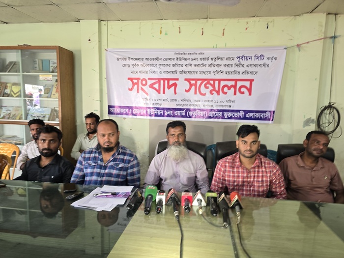 স্টাফ রিপোর্টার: নারায়ণগঞ্জ রূপগঞ্জের ভোলাবো ইউনিয়নের ৯ নং ওয়ার্ড গুতুলিয়া এলাকায় পূর্বায়ন সিটি নামের এক আবাসন প্রকল্পের নিয়োজিত লোকজন স্থানীয় কৃষকদের কাছ থেকে জমি না কিনেই জোরপূর্বক জমিতে বালু ভরাট করার অভিযোগ উঠেছে। বালু ভরাটে বাঁধা দেওয়ায় কৃষকদের বিরুদ্ধে রূপগঞ্জ থানায় মিথ্যা চাঁদাবাজির অভিযোগ করেছে ওই আবাসন কর্তৃপক্ষ। এর প্রতিবাদে শনিবার (০১ মার্চ) দুপুরে রূপগঞ্জ উপজেলার মঠের ঘাট এলাকায় অবস্থিত রূপগঞ্জ প্রেসক্লাব কার্যালয়ে ভুক্তভোগী কৃষকরা সংবাদ সম্মেলন করেছেন।