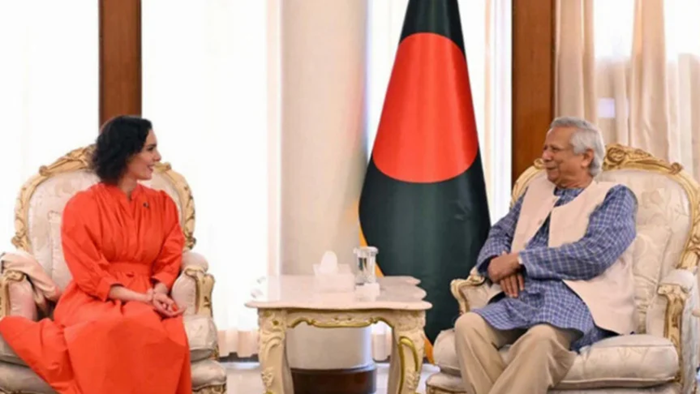বাংলাদেশ সফররত ইউরোপীয় ইউনিয়নের (ইইউ) কমিশনার হাজা লাহবিব আজ সোমবার (৩ মার্চ) ঢাকায় রাষ্ট্রীয় অতিথি ভবন যমুনায় অন্তর্বর্তী সরকারের প্রধান উপদেষ্টা অধ্যাপক ড. মুহাম্মদ ইউনূসের সঙ্গে সাক্ষাৎ করেন। এ সময় প্রধান উপদেষ্টা এসব কথা বলেন।